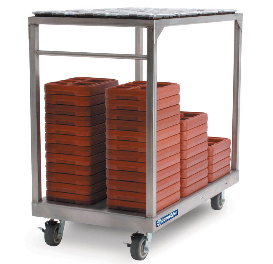 | CAFETERIA TRAY STAGING CART | JZSCA-1 | Height: 48” / Width: 43” / Depth: 27” | 200 any type cafeteria tray (e.g. JonesZylon PPST-28) |
